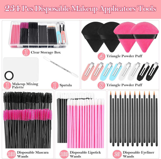 Disposable Applicators Kit with Makeup Puff, Mixing Palette, Artist Supplies, Accessories, Mascara Wands, Lip Brushes, Hair Clips, Powder Puffs for Face with Storage Box